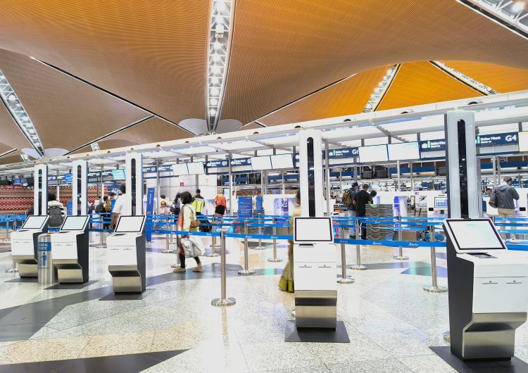 Mais il est recommandé de s’enregistrer soi-même aux guichets de self-check in dans la rangée de comptoirs G. L’enregistrement prend en moyenne 5 minutes… et sans attente. Du personnel est disponible pour aider le passager. L’enregistrement des bagages est ouvert jusqu’à 60 minutes avant le départ.