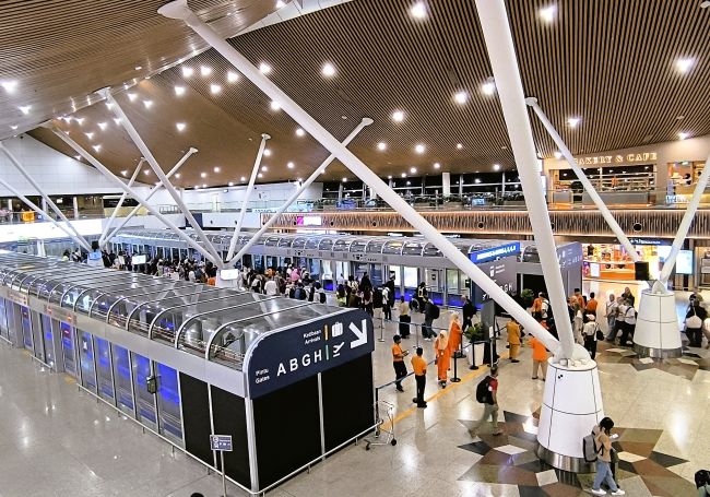 Le Terminal 1 de l’aéroport de Kuala Lumpur offre un excellent niveau de confort et continue d’impressionner par sa belle architecture malgré ses presque 30 ans d’âge. L’aérogare est directement reliée par train express au centre ville. On accède à la zone de départ par ascenseur ou escaliers mécaniques. La zone d’enregistrement se trouve en rangée H pour la classe économique.