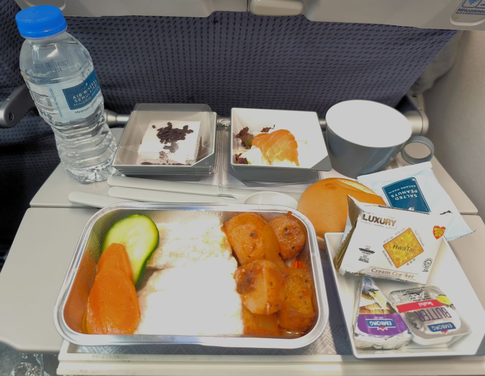 Ayant utilisé l’option menu « Dining in the sky » mais ayant eu un problème de retard sur le vol reliant Bangkok à Kuala Lumpur- m’obligeant à rester 24 heures de plus en Malaisie- ma pré-commande d’un plat typique malais a été annulée.
