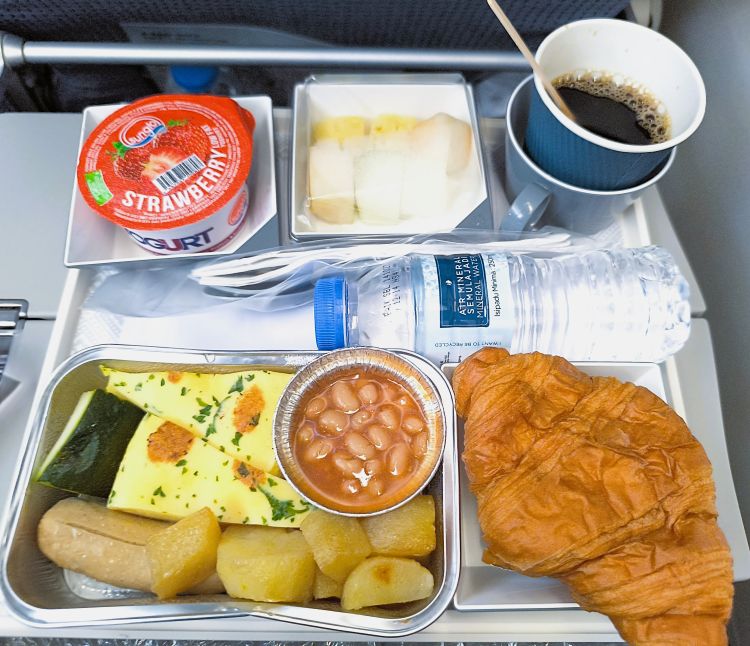 45 minutes après le décollage, débute le service de repas. Les passagers de l’Economy Plus sont de fait servis les premiers.